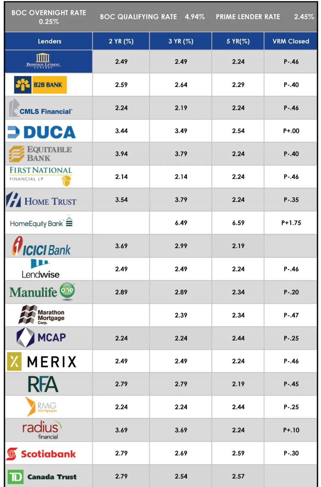 随着新的抵押贷款申请步履蹒跚,贷方降低了贷款利率。加拿大汇丰银行在6月初宣布了一项五年期固定违约保险抵押贷款,利率为1.99%,引领了这一趋势,这是当时五年期固定利率的最低水平。几天后,多家经纪行提供了五年期固定利率为 1.98%起,在某些受到限制的情况下甚至更低。利率比较网站RateSpy.com的数据显示,截至7月2日,最低的固定抵押贷款利率为一年期固定利率,为1.69%(对于首付低于20%的有保险贷款)。甚至10年期固定利率也达到了新的低点,目前全国范围内只有2.84%。